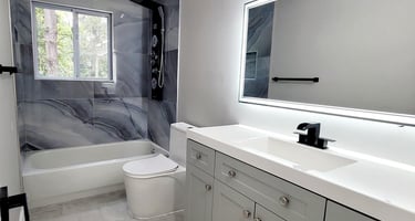 Our bathroom remodeling projects transform outdated spaces into modern, functional, and elegant bathrooms across Northern Virginia. We specialize in walk-in showers, frameless glass enclosures, custom vanities, and designer tile work, combining quality materials with efficient layouts to create clean, spa-like spaces that enhance comfort and long-term value.