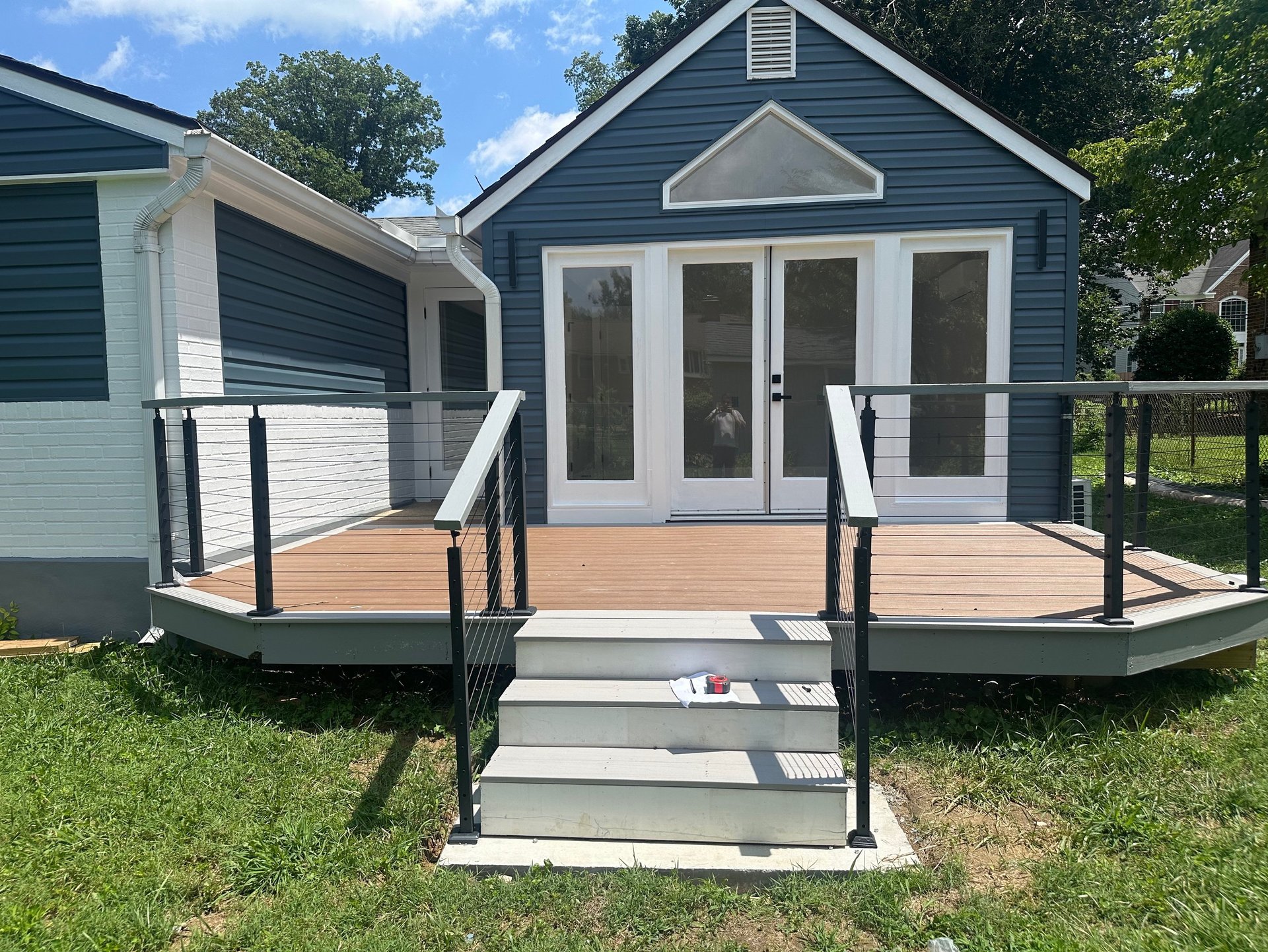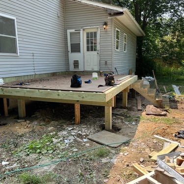 Explore our deck construction gallery with work-in-progress photos, including structural framing, deck boards installation, stairs, railings, and permit-compliant builds completed by our professional team in Northern Virginia.